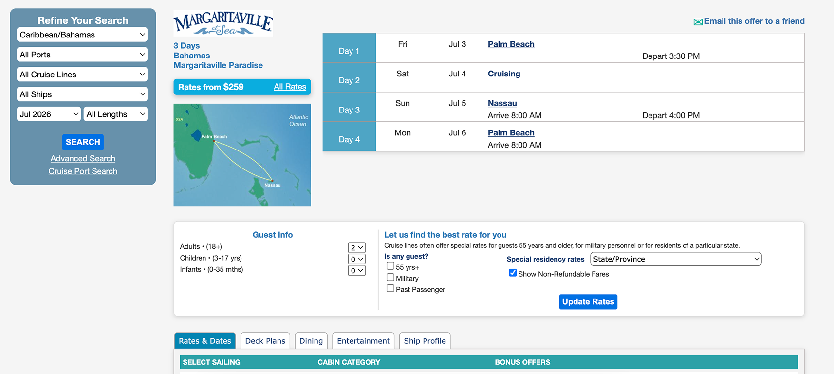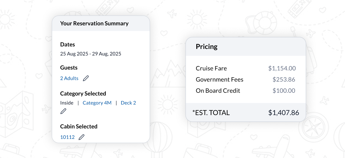 A customer visits the booking site to plan a family cruise vacation. They want to compare different itineraries, check cabin availability, understand total pricing, and complete the booking confidently.